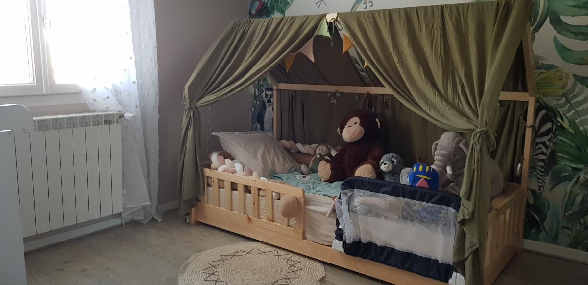 De plain-pied : Entrée, salon séjour double avec insert, cuisine ouverte équipée Schmidt, dégagement avec rangement, trois chambres, salle de bains, water-closet ;